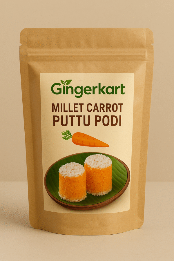 At GingerKart, we ensure our Millet Carrot Puttu Podi is 100% natural, preservative-free, and free from artificial colors or flavors, bringing you a safe, nutritious, and delicious choice every morning.